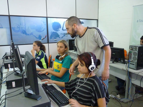 Dirigida a crianças e adolescentes do CCA-COR do bairro da Aclimação e ministrada pelos educadores do Asas no espaço NET Comunidade, no bairro do Cambuci (SP)